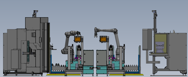 To structurally reduce physical strain and simplify the process, two cobots are used in mirrored cells. This setup makes the production environment more compact and ensures greater calm and consistency in the process. Thanks to automation, the cobot takes over the heavy and repetitive tasks, allowing the operator to supervise and monitor quality. The work is now lighter, clearer, and more efficient.